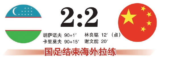 国足的三场热身赛对手从弱到强,比赛逐渐增加强度,最后与乌兹别克斯坦队的比赛,是国足教练组最看重的。这场热身赛分三节进行,每节35分钟,国足在第一节由林良铭和谢文能进球,两球领先,直到第三节比赛尾声,乌队连续打入两球扳平比分。据了解,这场较量国足分别采取了4231和541两套打法,所有队员都获得了比赛机会。