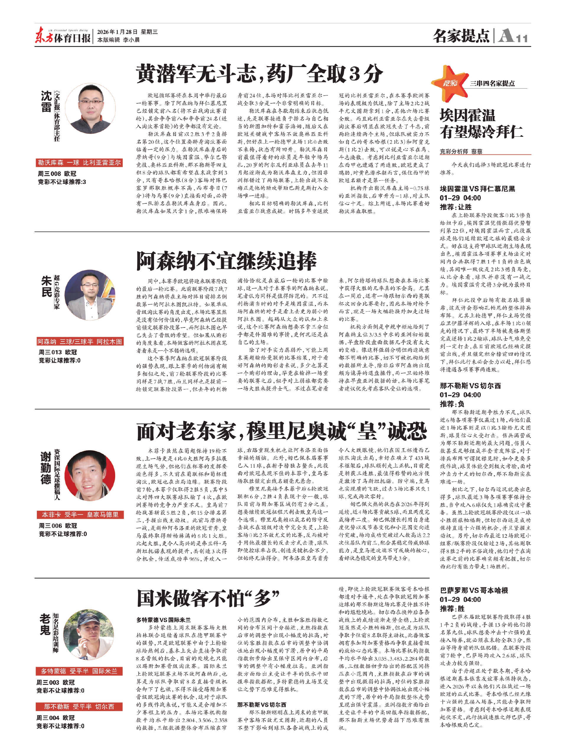 相比目标明确的勒沃库森,比利亚雷亚尔战意成疑。时隔多年重返欧冠的比利亚雷亚尔,在本赛季欧洲赛场的表现极为低迷,除了主场2比2战平尤文图斯拿到1分,其他六场比赛全败。而且比利亚雷亚尔在失去晋级淘汰赛后明显在欧冠失去了斗志,前两轮连续两个主场,但球队被实力不如自己的哥本哈根(2比3)和阿贾克斯(1比2)击败,可以说是心不在焉、斗志涣散。考虑到比利亚雷亚尔近期在西甲也遭遇了两连败,欧冠更成了鸡肋,对黄色潜水艇而言,保住西甲的欧冠名额才是第一任务。
