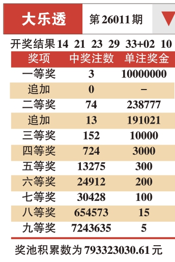 大乐透 第26011期