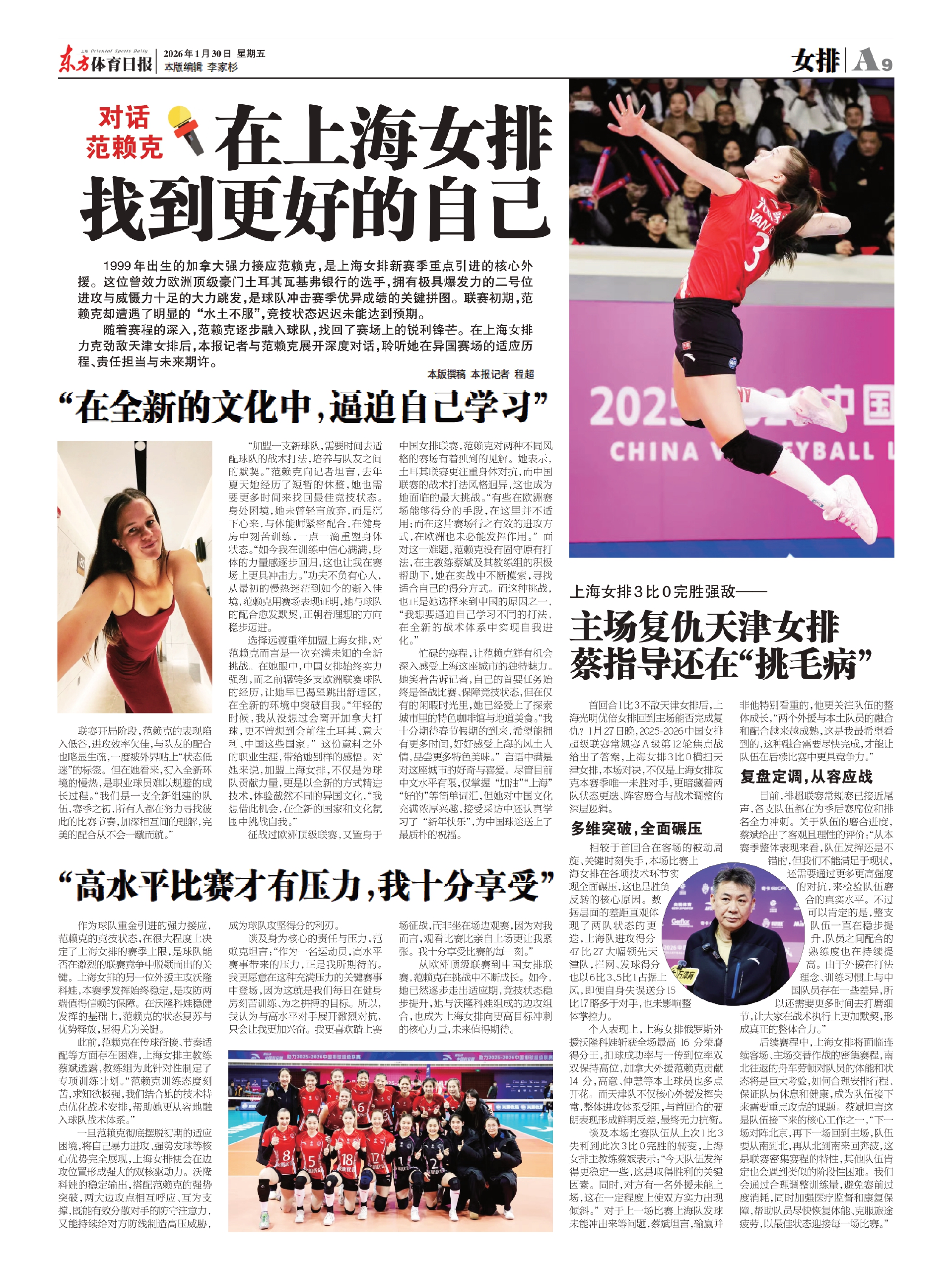 随着赛程的深入,范赖克逐步融入球队,找回了赛场上的锐利锋芒。在上海女排力克劲敌天津女排后,本报记者与范赖克展开深度对话,聆听她在异国赛场的适应历程、责任担当与未来期许。