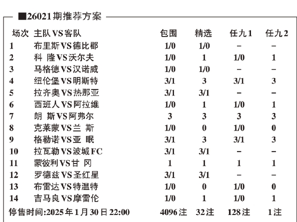 注:比赛场次截止时间为1月29日23:59,具体购买场次以体彩中心网站最终显示为准