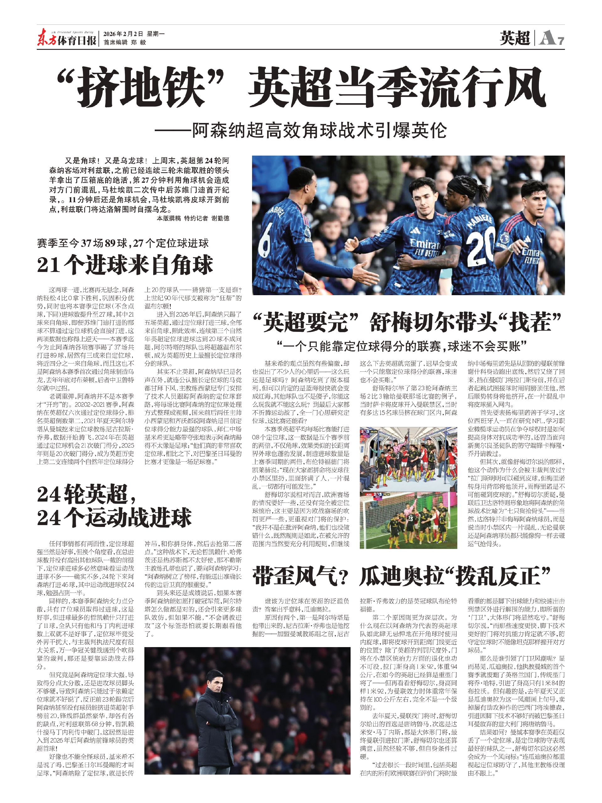 老调重弹,阿森纳并不是本赛季才“开窍”的。20202-2021赛季,阿森纳在英超仅六次通过定位球得分,排名英超倒数第二,2021年夏天阿尔特塔从曼城挖来定位球教练尼古拉斯·乔弗,数据开始腾飞,2024年在英超通过定位球机会21次破门得分,2025年则是20次破门得分,成为英超历史上第二支连续两个自然年定位球得分上20的球队——猜猜第一支是谁?上世纪90年代那支被称为“狂帮”的温布尔顿!