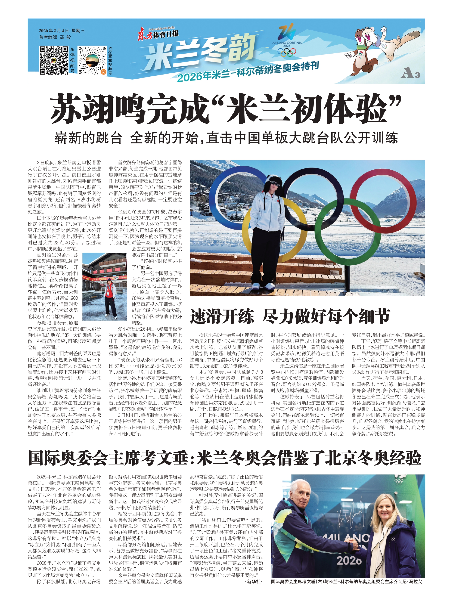 谈到以卫冕冠军身份来到米兰冬奥会赛场,苏翊鸣说:“我不会给自己太多压力,现在我专注的就是做好自己,做好每一件事情、每一个动作,更加专注于比赛本身,并不会有太多标签在身上。还是好好享受这场比赛,好好享受自己的第二次奥运经历,希望发挥出应有的水平。”