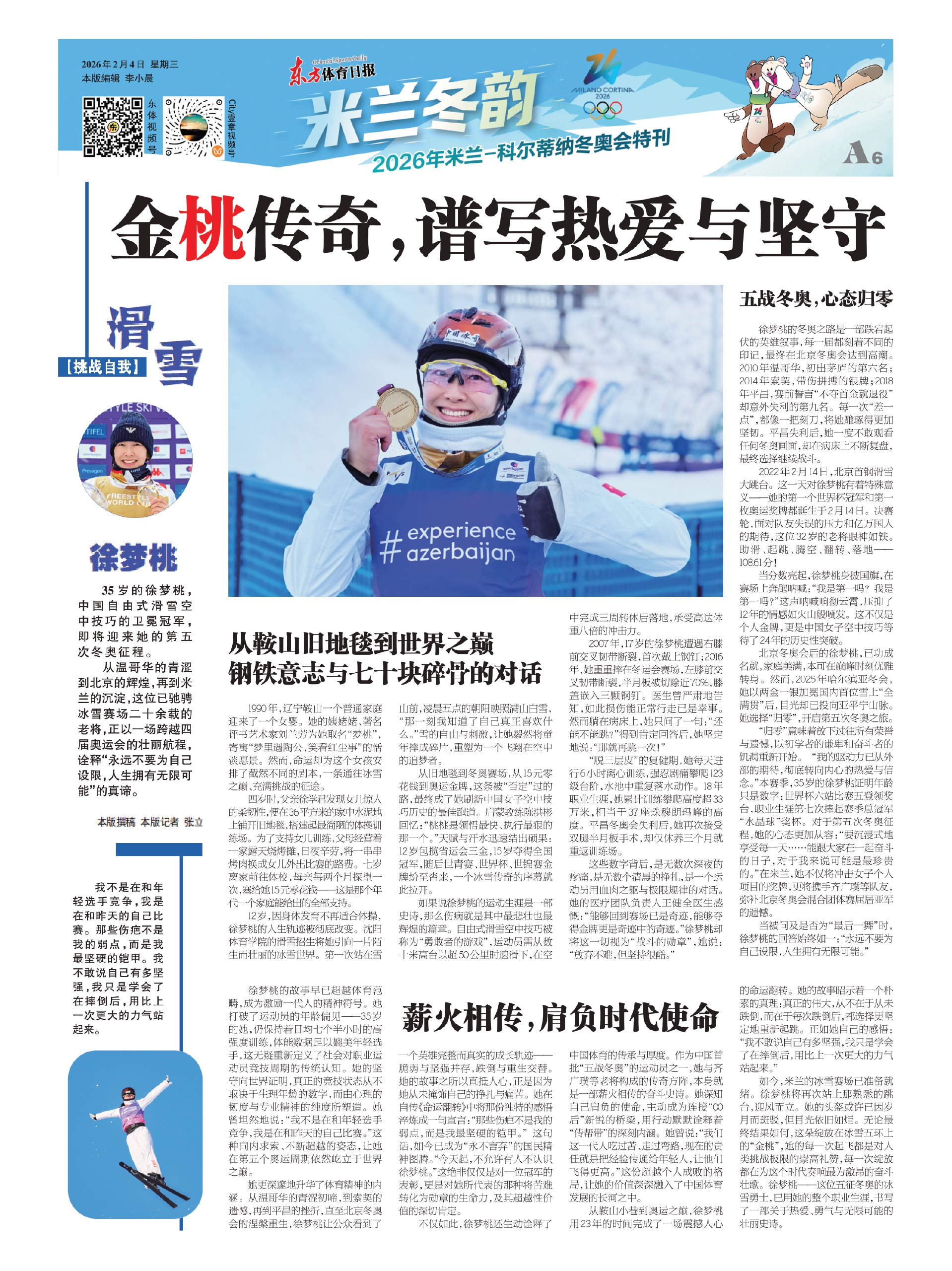 如今,米兰的冰雪赛场已准备就绪。徐梦桃将再次站上那熟悉的跳台,迎风而立。她的头盔或许已因岁月而斑驳,但目光依旧如炬。无论最终结果如何,这朵绽放在冰雪五环上的“金桃”,她的每一次起飞都是对人类挑战极限的崇高礼赞,每一次绽放都在为这个时代奏响最为激昂的奋斗壮歌。徐梦桃——这位五征冬奥的冰雪勇士,已用她的整个职业生涯,书写了一部关于热爱、勇气与无限可能的壮丽史诗。