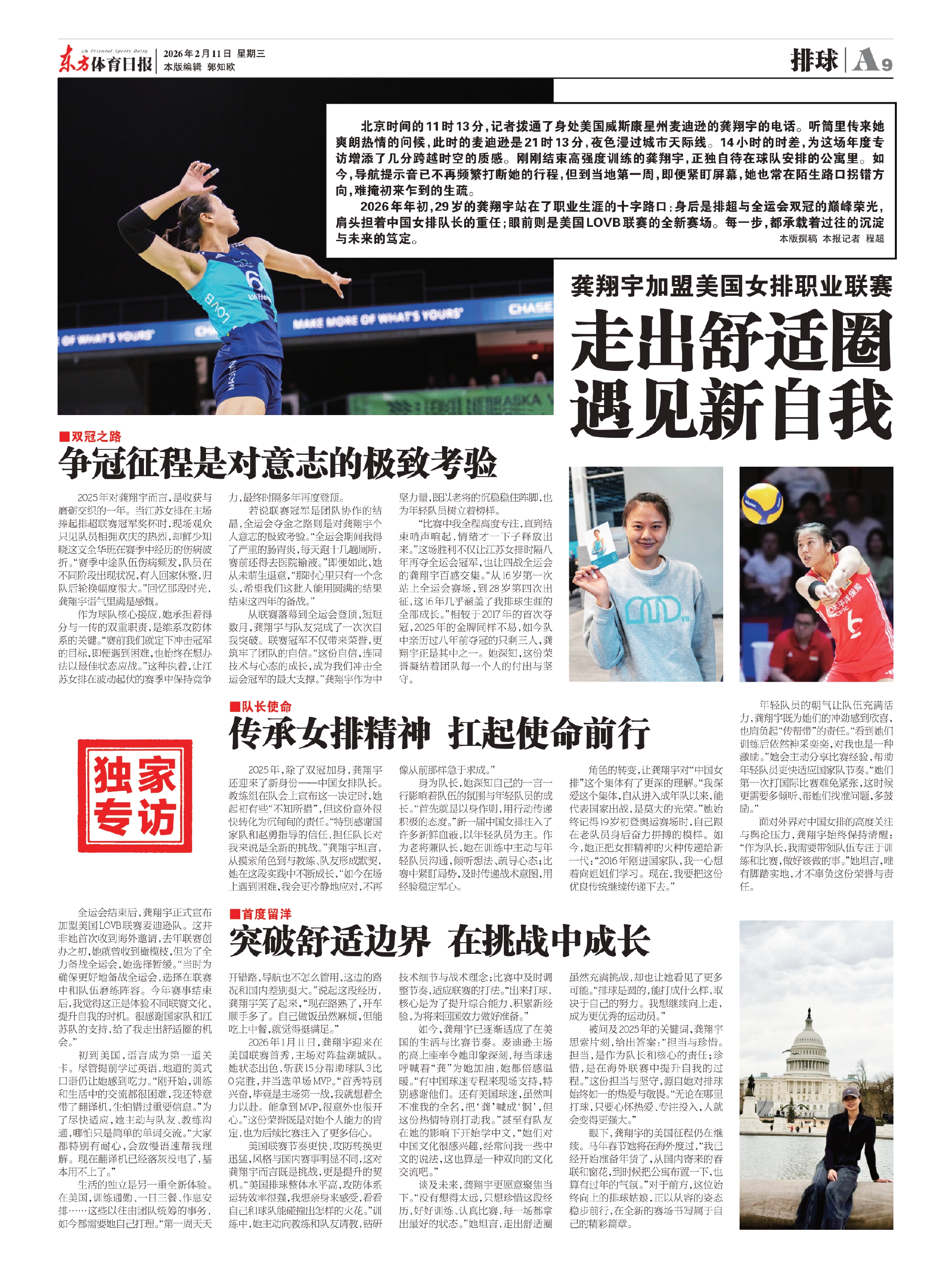 眼下,龚翔宇的美国征程仍在继续。马年春节她将在海外度过,“我已经开始准备年货了,从国内寄来的春联和窗花,到时候把公寓布置一下,也算有过年的气氛。”对于前方,这位始终向上的排球姑娘,正以从容的姿态稳步前行,在全新的赛场书写属于自己的精彩篇章。