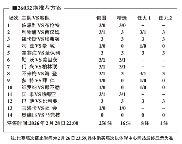 本周继续是欧洲赛事的舞台,本期胜负彩“14选9”由4场英超、5场德甲、2场意甲和3场西甲构成。