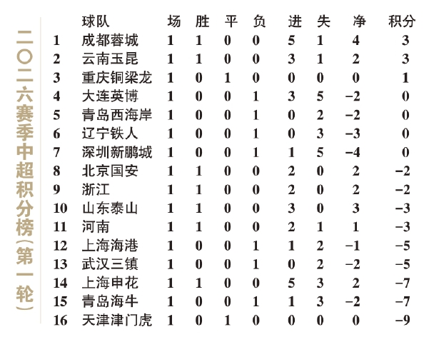 或是一种巧合。联赛的揭幕战放在了成都,而成都的5比1大胜也不啻为一种完美的“配合”。作为上赛季争冠军团中唯一没被扣分的球队,成都的首轮大胜让他们在马年的冠军争夺中一马当先。