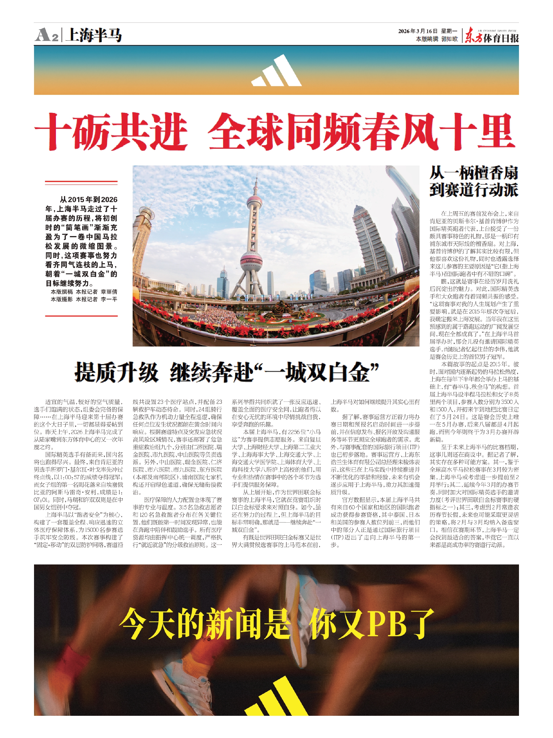 从2015年到2026年,上海半马走过了十届办赛的历程,将初创时的“简笔画”渐渐充盈为了一卷中国马拉松发展的微缩图景。同时,这项赛事也努力看齐同气连枝的上马,朝着“一城双白金”的目标继续努力。