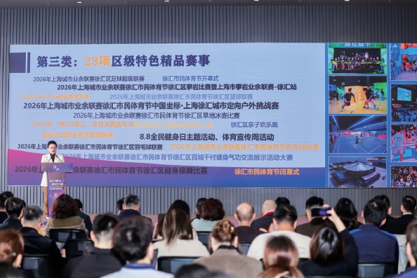 徐汇区体育局局长张缨现场发布了2026年度重大体育赛事计划。新的一年,徐汇区将构建更为庞大的赛事体系,计划举办7项国际赛事、19项市级重点赛事以及23项区级品牌赛事。这其中包括了FISE世界极限运动节、中国坐标·上海城市定向户外挑战赛、上海市乒乓球嘉年华等一系列丰富多元、特色鲜明的体育赛事IP,为商圈引流和消费升级注入强劲的体育活力。