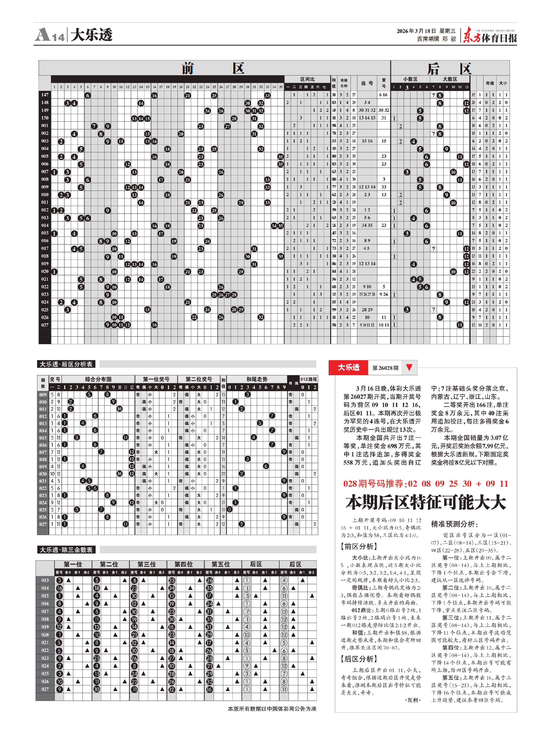 第A14版:大乐透 2026-03-18