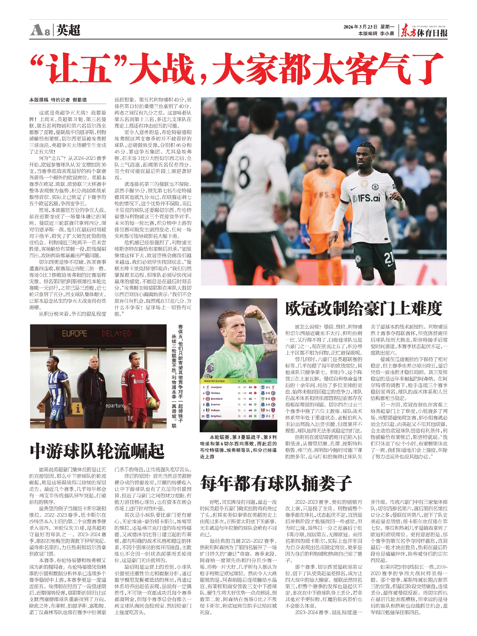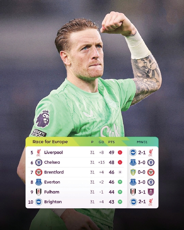 这就是英超争五大战?我要验牌!上周末,英超第31轮,第三名曼联、第五名利物浦和第六名切尔西全都擦了皮鞋,曼联战平伯恩茅斯,利物浦输给布莱顿,切尔西更是被埃弗顿三球血洗,英超争五大战硬生生变成了让五大战!