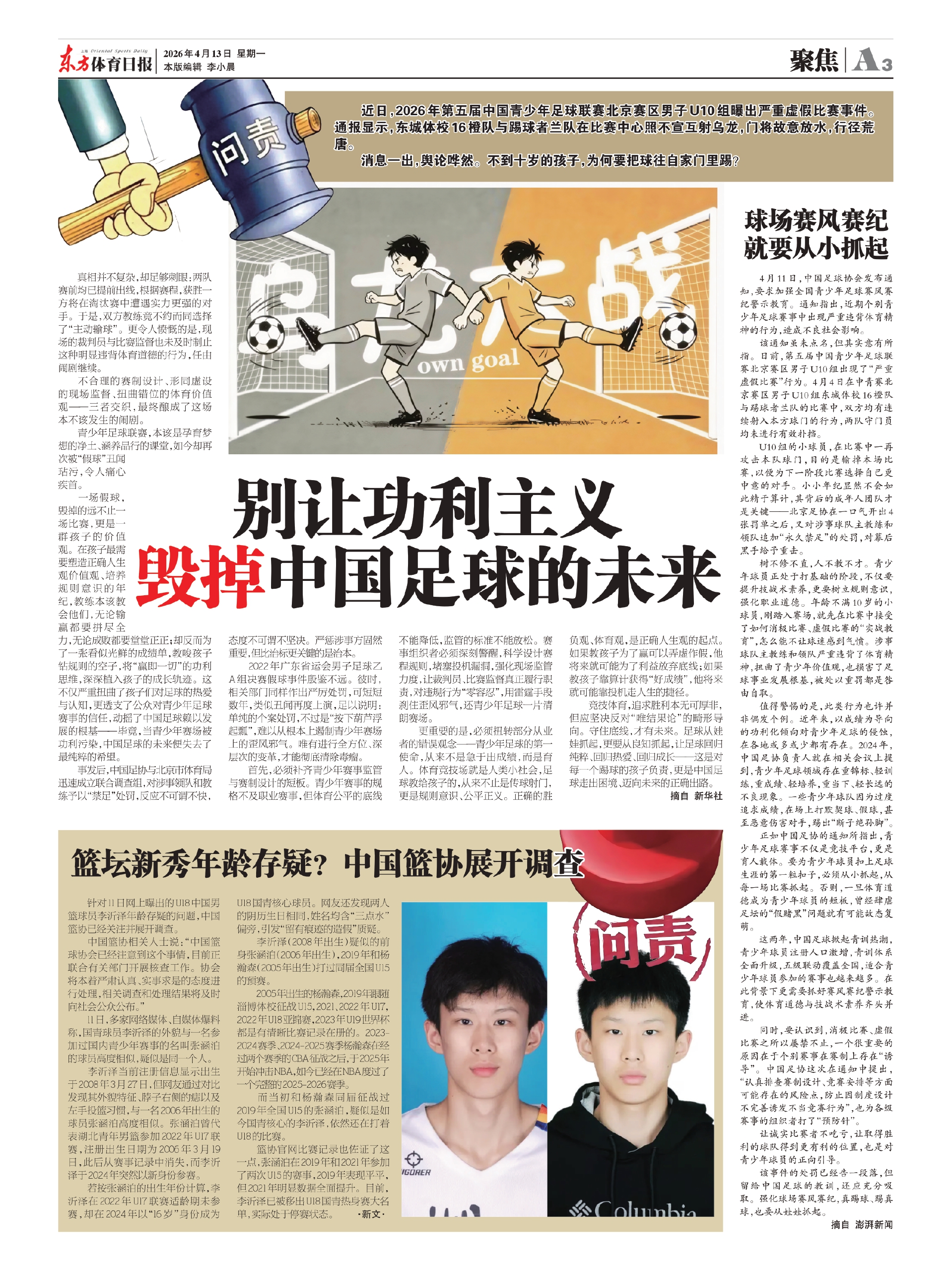 更重要的是,必须扭转部分从业者的错误观念——青少年足球的第一使命,从来不是急于出成绩,而是育人。体育竞技场就是人类小社会,足球教给孩子的,从来不止是传球射门,更是规则意识、公平正义。正确的胜负观、体育观,是正确人生观的起点。如果教孩子为了赢可以弄虚作假,他将来就可能为了利益放弃底线;如果教孩子靠算计获得“好成绩”,他将来就可能靠投机走人生的捷径。