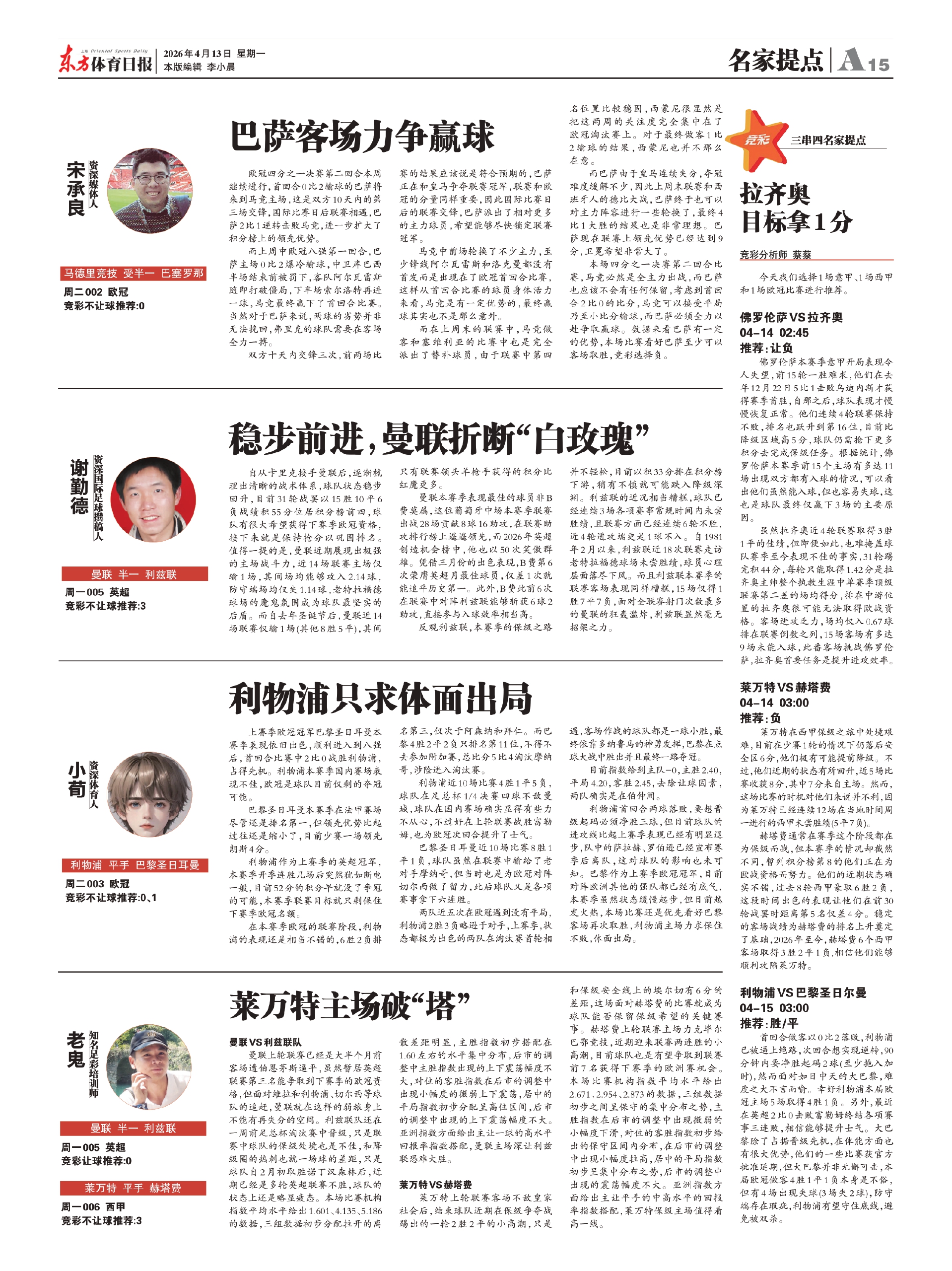 而上周中欧冠八强第一回合,巴萨主场0比2爆冷输球,中卫库巴西半场结束前被罚下,客队阿尔瓦雷斯随即打破僵局,下半场索尔洛特再进一球,马竞最终赢下了首回合比赛。当然对于巴萨来说,两球的劣势并非无法挽回,弗里克的球队需要在客场全力一搏。