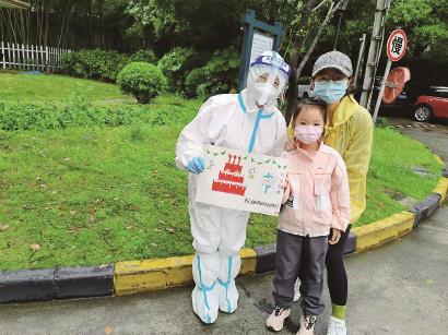 历经近一个月的艰辛努力,4月26日,小区抗疫取得阶段性成果,由封控区转为管控区,这天也正逢张丽丽虚岁70岁的生日。志愿者们特意提前10分钟集合,为她唱了生日歌。一位志愿者让7岁的女儿特意为她画了一幅画,致敬“抗疫先锋”,并“祝张奶奶生日快乐!”在志愿者岗位上收获了满满的爱和祝福,张丽丽非常开心:“真是一个很特别、很难忘的生日。”