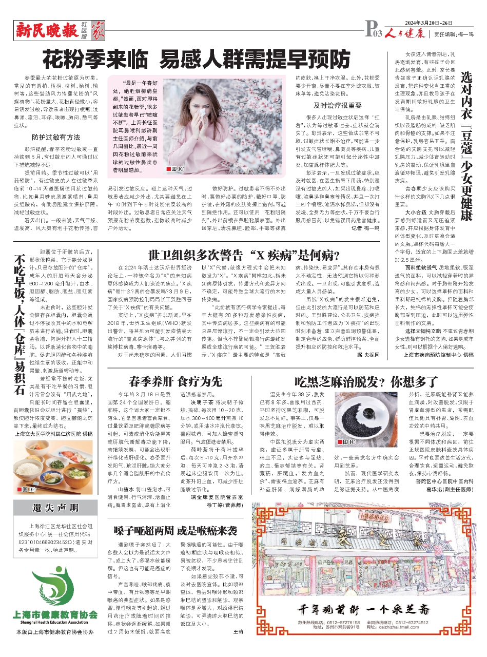 “最是一年春好处,绝胜烟柳满皇都。”然而,面对即将到来的花粉季,很多过敏患者早已“喷嚏不断”。上海长征医院耳鼻喉科彭浒副主任医师介绍,与前几周相比,最近一周因花粉过敏前来就诊的过敏性鼻炎患者明显增加。