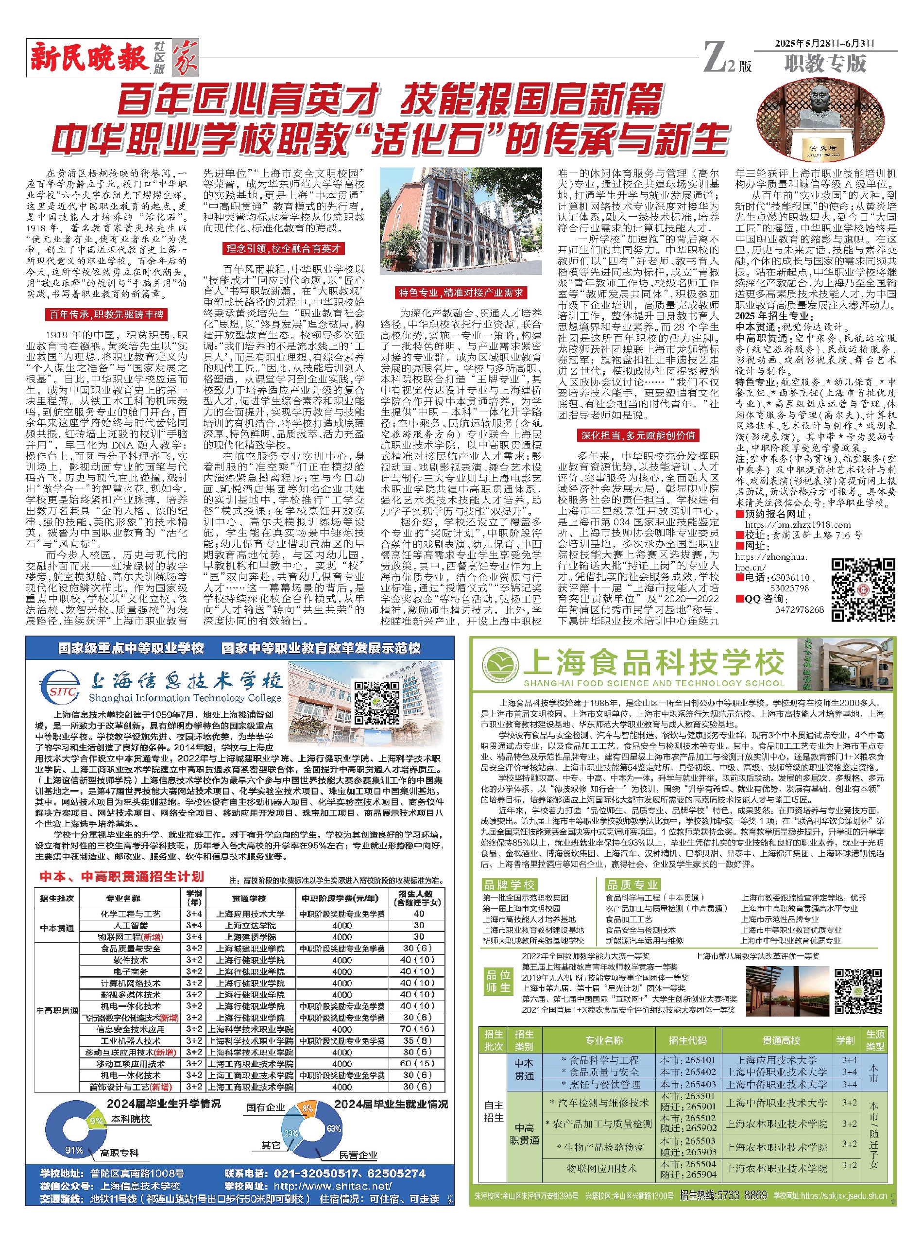 从百年前“实业救国”的火种,到新时代“技能报国”的使命;从黄炎培先生点燃的职教星火,到今日“大国工匠”的摇篮,中华职业学校始终是中国职业教育的缩影与旗帜。在这里,历史与未来对话,技能与素养交融,个体的成长与国家的需求同频共振。站在新起点,中华职业学校将继续深化产教融合,为上海乃至全国输送更多高素质技术技能人才,为中国职业教育高质量发展注入澎湃动力。
