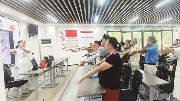 健康科普 活动中,金汇镇社区卫生服务中心全科医生张叶通过健康讲座,向社区居民普及运动防病知识,并针对居民常见的慢性病及亚健康问题进行了专业讲解。中医科医生顾楠以“理论+实操”形式,深入解析了“润燥养肺、温阳固本”的养生要点,并现场教学了“经络拍打操”“药膳调补祛湿邪”等实用技能。
