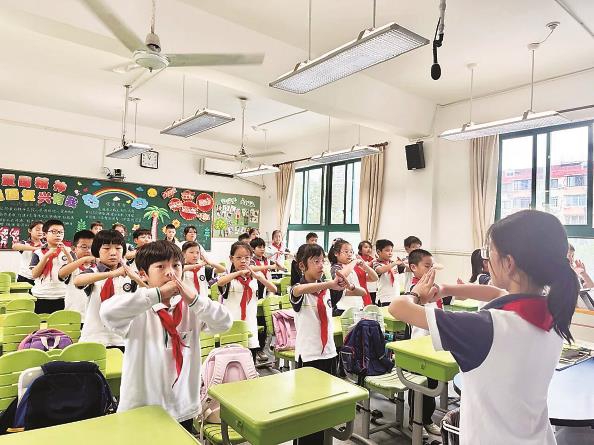 课堂上,李守培以《武术的中华密码》为题,从基础的抱拳礼教起。“左手覆右拳”的标准动作里,藏着谦逊克制的礼仪之道;结合“武以德立”的古训,孩子们在对练行礼、失误致歉间,领悟“敬人敬己”的处世哲学。同时,李守培借拳种与自然的联结、刀术“天、地、师”的文化内涵,解读武术“天人合一”的智慧,帮助孩子们触摸中华传统文化根脉,传递“强国强种”的家国情怀,让孩子们明白:学武术不仅是练招式,更是传承“为国为民”的担当,以武育德、以思政铸魂。
