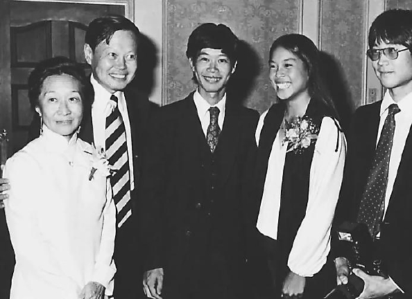 1982年,杨振宁全家福。左起:杜致礼、杨振宁、杨光诺、杨又礼、杨光宇