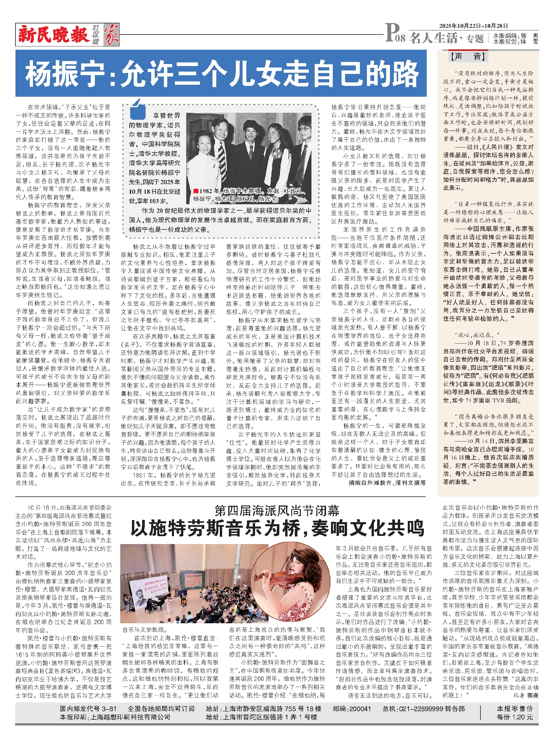 享誉世界的物理学家、诺贝尔物理学奖获得者,中国科学院院士,清华大学教授、清华大学高等研究院名誉院长杨振宁先生,因病于2025年10月18日在北京逝世,享年103岁。