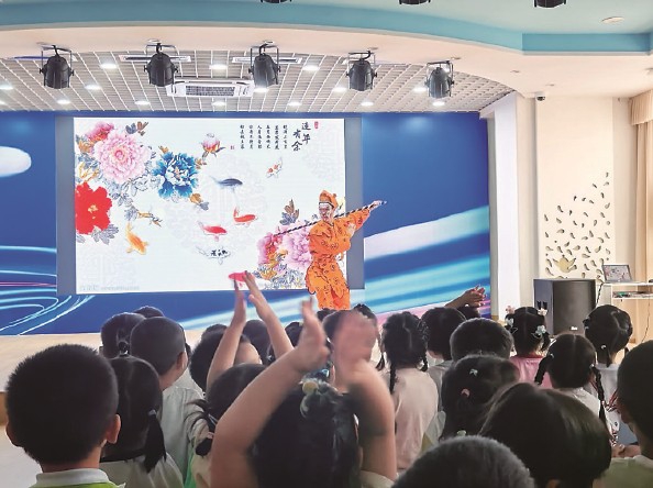 婉转的唱腔、精美的戏服……国粹京剧体验进校园系列活动在幼儿园多功能厅热闹开启。活动选取《卖水》《大闹天宫》等经典京剧选段,通过专业演员生动的唱念做打、色彩鲜明的脸谱展示,让孩子们直观感受京剧艺术的独特韵味。在互动环节,孩子们模仿着经典动作,尝试佩戴简易脸谱,在欢声笑语中近距离触摸传统文化。