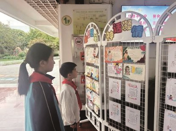 四年级的同学们在“笔书心仪篇章”的活动中记录下自己阅读过的神话故事,并以此为基础,完成了“神话人物卡”的特色活动。各式各样手绘的图文并茂的神话人物名片,集中展示了每一位同学对于神话故事的深入探索过程,并通过对神话人物的品析评价,感受到神话的神奇创造与想象。