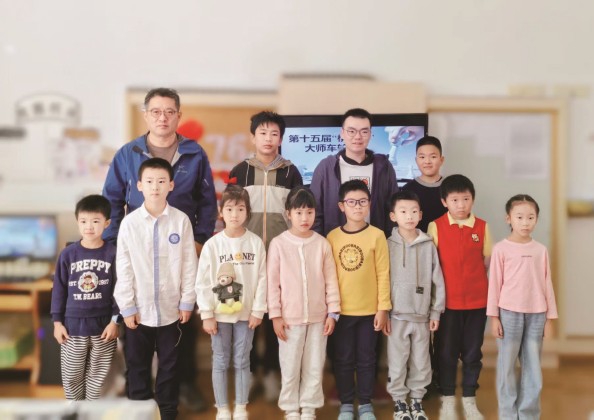 在这个专属小棋手的节日里,学校迎来了一群特殊的访客——从沙霞幼儿园毕业、荣获“上海市国际象棋棋协大师”称号的“师哥师姐”。他们怀揣着对母校的眷恋“回家”,探望当年的恩师,会见稚气未脱的“小师弟小师妹”。活动现场,“师哥师姐”与中国国际象棋运动员、男子国际象棋特级大师徐译展开车轮对战。他们时而凝神沉思、斟酌棋局,时而果断落子、攻防转换,在棋盘上尽显深厚的技术功底与全局视野,展现了精湛的棋艺。与此同时,“师哥师姐”的家长们齐聚“棋派圆桌会”,向幼儿园的小棋手家长倾囊相授育儿经验,分享孩子从启蒙学棋到斩获“上海市国际象棋棋协大师”称号的奋斗历程。在棋脉相承的温馨氛围中,在场家长深刻领悟到“台上一分钟,台下十年功”的深刻内涵。棋手们与“小师弟小师妹”以棋为媒传递智慧,用温情续写棋趣故事,尽显国际象棋运动的独特魅力。