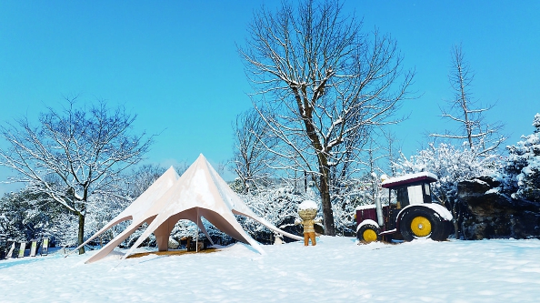 景区里的新乡土民宿最是讨喜,外墙缀着浅褐夯土纹理,嵌着原木窗棂,积雪落于檐角,堆出圆润弧度,与周遭枯枝、翠竹相映,满是乡野雅趣。推开门,暖光漫溢全屋,原木家具带着淡淡松木香,沙发铺着绒面软垫,坐上去软软乎乎裹住身体,周身寒气瞬间驱散。客房床上铺着加厚棉絮与纯棉床品,触感细腻亲肤,睡前踩在恒温地暖的实木地板上,脚心暖意渐升,连带着疲惫都慢慢消散。民宿露台摆着藤编桌椅,落雪后覆上一层薄白,煮一壶热茶,水汽氤氲间,看远处山林雪色,惬意至极。
