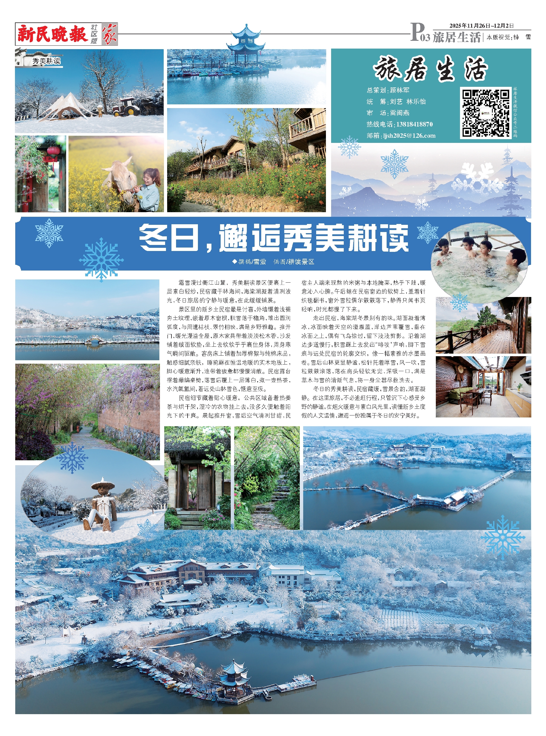 冬日的秀美耕读,民宿藏暖,雪景含韵,湖面凝静。在这里旅居,不必追赶行程,只管沉下心感受乡野的静谧,在烟火暖意与素白风光里,读懂新乡土度假的人文温情,邂逅一份独属于冬日的安宁美好。
