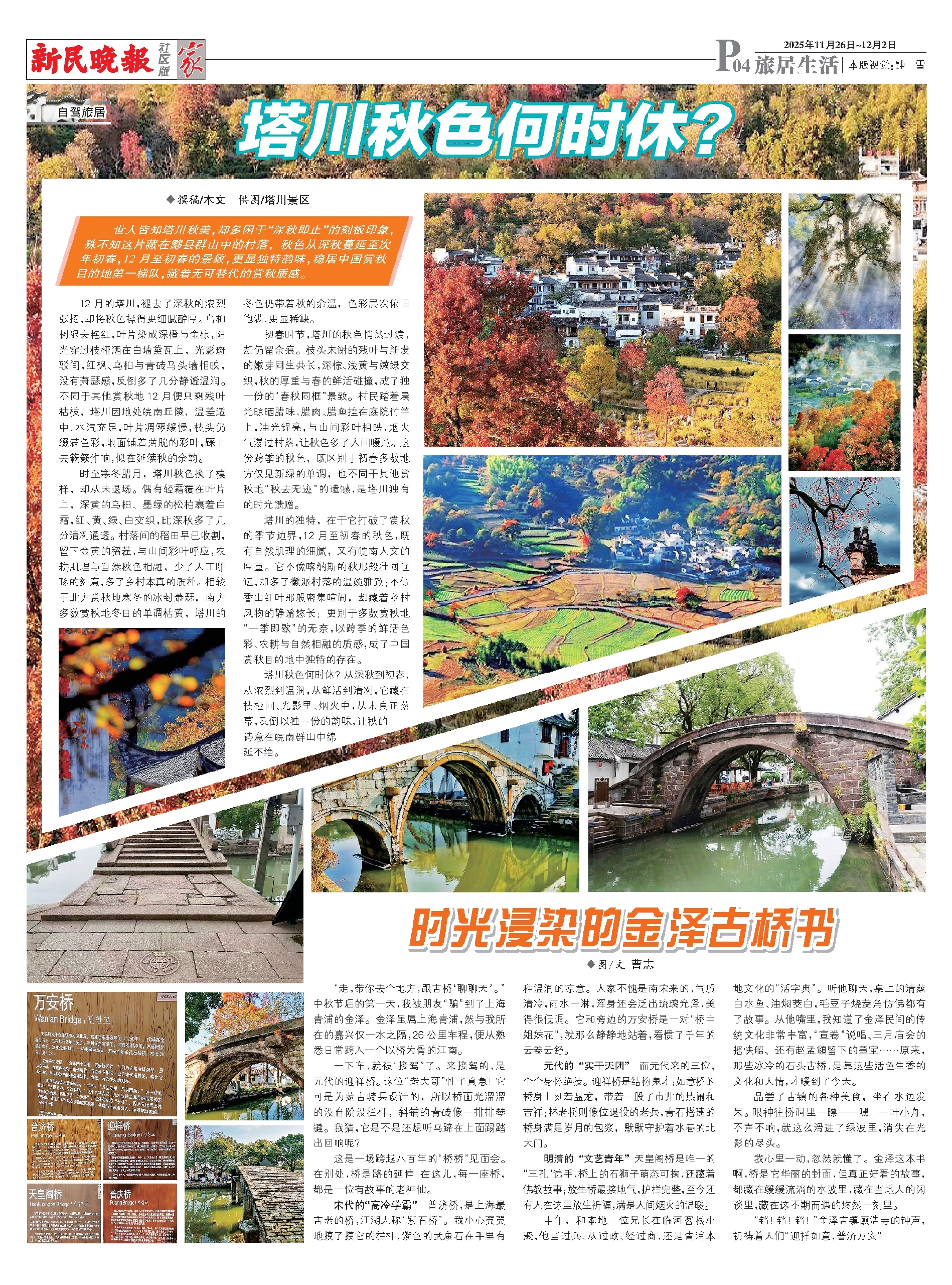 时至寒冬腊月,塔川秋色换了模样,却从未退场。偶有轻霜覆在叶片上,深黄的乌桕、墨绿的松柏裹着白霜,红、黄、绿、白交织,比深秋多了几分清冽通透。村落间的稻田早已收割,留下金黄的稻茬,与山间彩叶呼应,农耕肌理与自然秋色相融,少了人工雕琢的刻意,多了乡村本真的质朴。相较于北方赏秋地寒冬的冰封萧瑟,南方多数赏秋地冬日的单调枯黄,塔川的冬色仍带着秋的余温,色彩层次依旧饱满,更显稀缺。