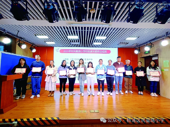 学校党支部副书记、副校长陈静从校园膳食安全、规范使用教辅材料、保障综合体育活动每日两小时等三方面,向全体家委会成员介绍了本学期学校的主要工作。她强调,家委会作为“家校纽带”有着重要价值,既要传递家长心声,也要助力学校优化育人举措,共同为孩子打造优质成长环境。她还为2025学年新一届校级家委会委员颁发了聘书。