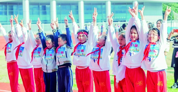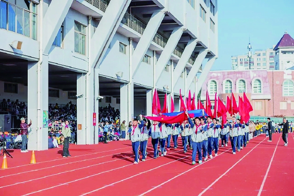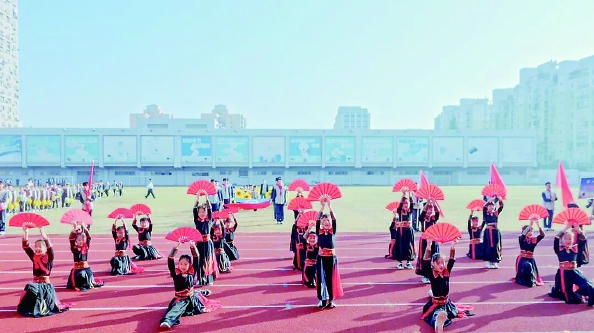 迎着清晨的暖阳,入场式就此拉开帷幕。学校红旗队方阵率先走过主席台,护送国旗与市光校旗庄严入场。他们身姿挺拔,目光坚定,步伐整齐划一。紧随其后的鼓号队身着统一服装,精神抖擞,激昂的鼓点铿锵有力。而由一、二年级学生组成的鲜花队手持金色向日葵,他们步履轻盈,为赛场增添了灵动朝气。接着,以班级或年级为单位的各方阵跟随《运动员进行曲》,迈着整齐的步伐依次行进至主席台前。伴着富有节奏感的音乐,各队变换着特色队形,口号、横幅、创意道具、舞蹈、武术表演贯穿其间,色彩斑斓,创意迭出,精彩纷呈。静态展示与动态表演交相辉映,少年们的青春朝气展现得淋漓尽致。