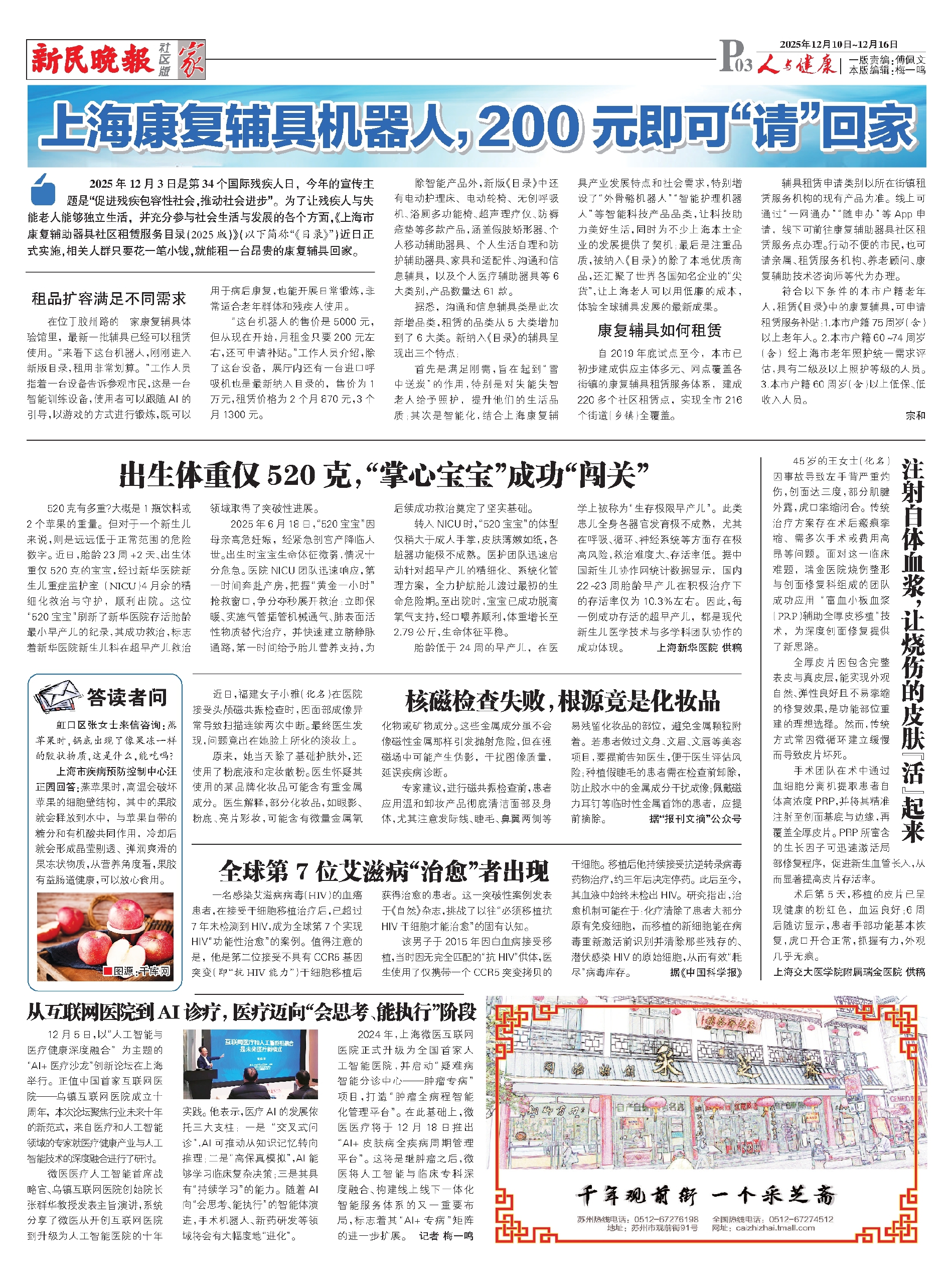2025年12月3日是第34个国际残疾人日,今年的宣传主题是“促进残疾包容性社会,推动社会进步”。为了让残疾人与失能老人能够独立生活,并充分参与社会生活与发展的各个方面,《上海市康复辅助器具社区租赁服务目录(2025版)》(以下简称“《目录》”)近日正式实施,相关人群只要花一笔小钱,就能租一台昂贵的康复辅具回家。