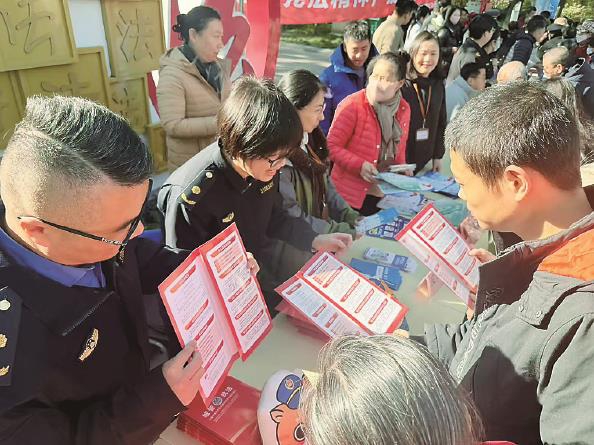 除集中宣传外,执法队员还主动走进沿街商户,化身“普法联络员”,在上门发放宣传资料的同时,与商户面对面沟通经营中遇到的法律难题,进一步畅通政企交流渠道。此外,队伍还联动社区网格员、物业工作人员强化联勤联动,建立普法宣传与矛盾调解协同机制,及时化解基层治理中的小微纠纷。