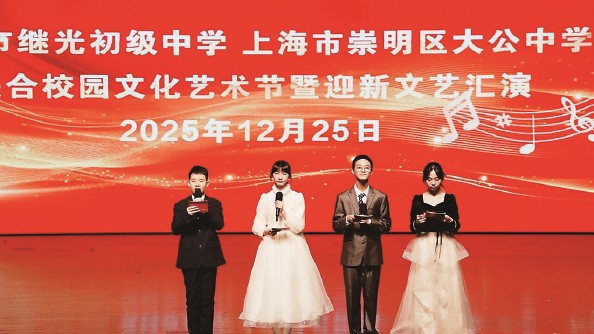 暖阳照拂,冬韵如歌。12月25日下午,上海市继光初级中学与上海市崇明区大公中学联合举办的“音为梦响艺随心动”校园文化艺术节暨迎新文艺汇演,在北外滩友邦大剧院精彩上演。两区教育局领导、两校师生及家长欢聚一堂,以艺术为桥,以青春为歌,共同谱写了视听与情感交融的校园文化新篇章。