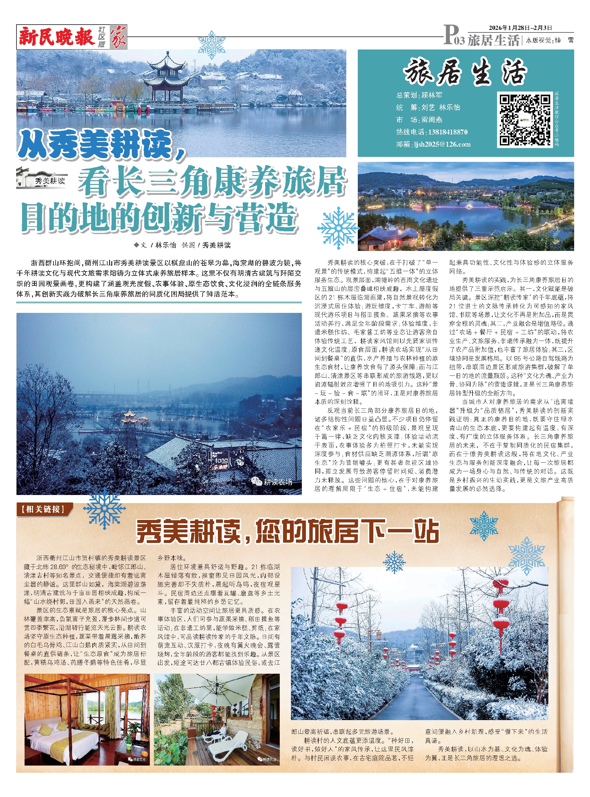 当城市人对康养旅居的需求从“逃离喧嚣”升级为“品质栖居”,秀美耕读的创新实践证明:真正的康养目的地,既要守住绿水青山的生态本底,更要构建起有温度、有深度、有广度的立体服务体系。长三角康养旅居的未来,不在于复制同质化的民宿集群,而在于像秀美耕读这般,将在地文化、产业生态与服务创新深度融合,让每一次旅居都成为一场身心与自然、与传统的对话。这既是乡村振兴的生动实践,更是文旅产业高质量发展的必然选择。