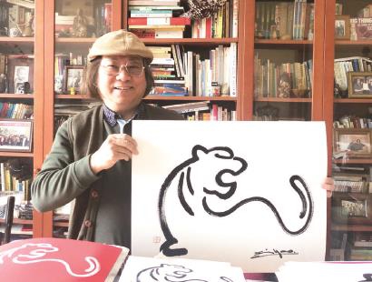 上海市美术家协会主席郑辛遥在创作《虎虎生威》前思考良久,他的艺术追求“简约不简单,想象有余地”。郑辛遥认为,画虎要画出“威猛”而不是“凶猛”,虽是一字之差,但值得琢磨推敲很久。为此,郑辛遥从收集图像资料,到创作构思,历时3个多月,前后画了20多个老虎造型,最后定稿为“猛虎啸回首”的神态。虽然整个老虎只有5笔,但每一笔都贯注了长时间的艺术思考,达到了一笔不能多,一笔不能少的地步。而虎尾的枯笔,不但让画面更具韵味,还增添了动势。 王映浤