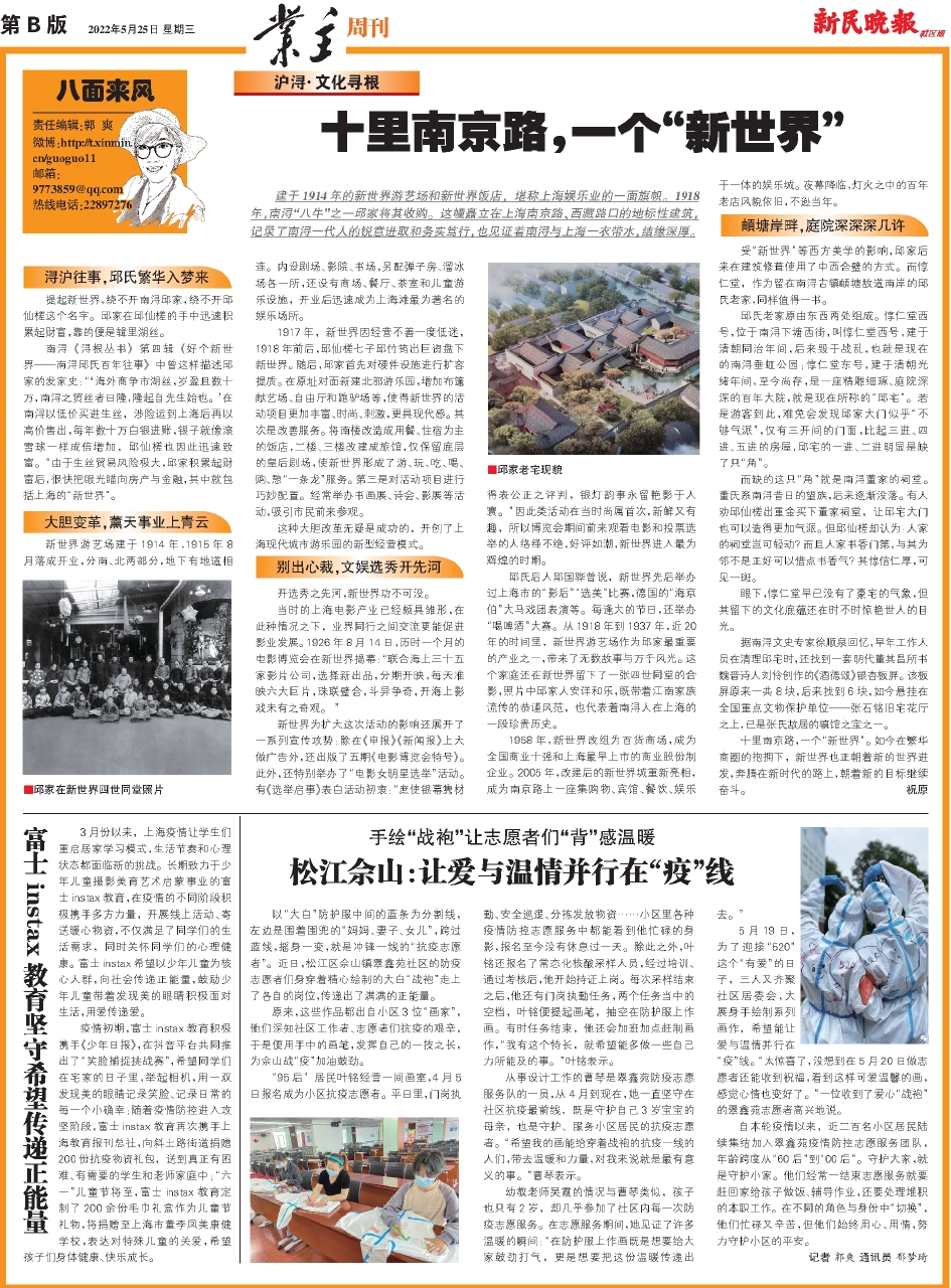 邱氏后人邱国骅曾说,新世界先后举办过上海市的“影后”“选美”比赛,德国的“海京伯”大马戏团表演等。每逢大的节日,还举办“喝啤酒”大赛。从1918年到1937年,近20年的时间里,新世界游艺场作为邱家最重要的产业之一,带来了无数故事与万千风光。这个家庭还在新世界留下了一张四世同堂的合影,照片中邱家人安详和乐,既带着江南家族流传的恭谨风范,也代表着南浔人在上海的一段珍贵历史。