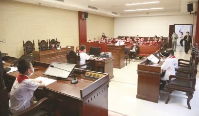 最后,我们来到了庄严而肃穆的法庭,在这里,我们的“案子”有模有样地审理起来了。审判长的位置高度是最高的,并且相当重要。当书记员说完话,我与人民陪审员和审判员便走到了自己的位置上坐了下来,当我敲响法槌的那一刻,我仿佛真的成了一名威严的审判长。模拟法庭井然有序地进行着,时间一分一秒地过去了,“案子”也告一段落,我好像身在其中无法自拔。模拟法庭结束后法官阿姨为我们讲解了关于法庭的知识,比如:法庭有四级,分别为最高人民法院、高级人民法院、中级人民法院和基层人民法院;每个审判长的法袍都是一样的,法袍上有四个金黄色的纽扣,分别代表着四级法院,每一颗纽扣上都刻着一个天平代表公平……