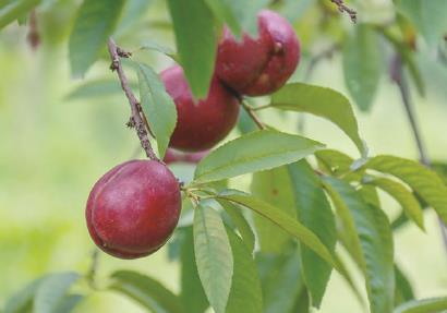“我种植的紫桃,天然、绿色、无公害。”果园负责人老高说着,就从树上摘下一只紫桃咬了一口,“你看,采了就能吃,吃着很放心。”