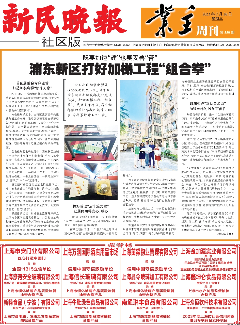 为推进加梯工作,由新区建交委牵头组建加梯工作专班,推动各街镇在突出党建引领、强化政企联动的基础上,探索“个性化分期付款+大品牌实施建设+全生命周期维保”新模式。个性化分期付款,缓解了居民一次性付款出资难;大品牌实施建设,则让加装电梯质量和效率有较好的保障;全生命周期维保,较好地解决了电梯加装的后续维保难题。