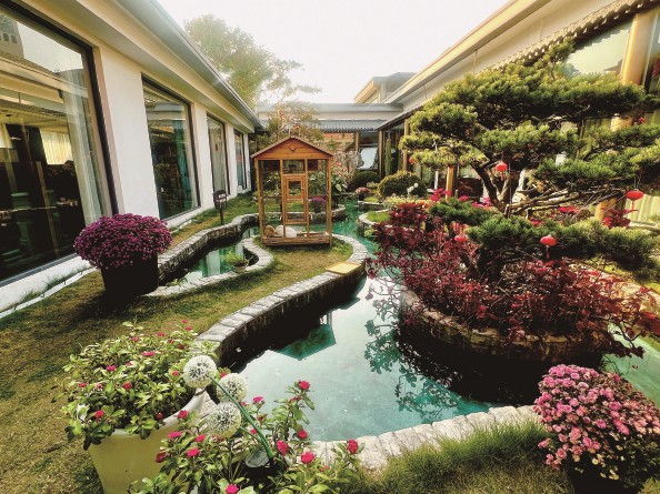千年文脉映照古今,小昆山园内二陆草堂静立,九峰禅寺钟声悠远,山间摩崖石刻默诉沧桑,山脚“九峰·味”飘散着徽菜与本帮菜融合的香气。“九峰·味”以山为名,以味为引。店招由上海市书法家协会主席丁申阳题写,雄浑秀丽的笔触彰显了对松江“九峰三泖”地域文化的传承。饭店建筑融合徽派风格与江南水乡情调,巧妙运用九峰禅寺文化符号、二陆草堂文人气息等本地元素,营造出古雅而富有当代气息的用餐空间。