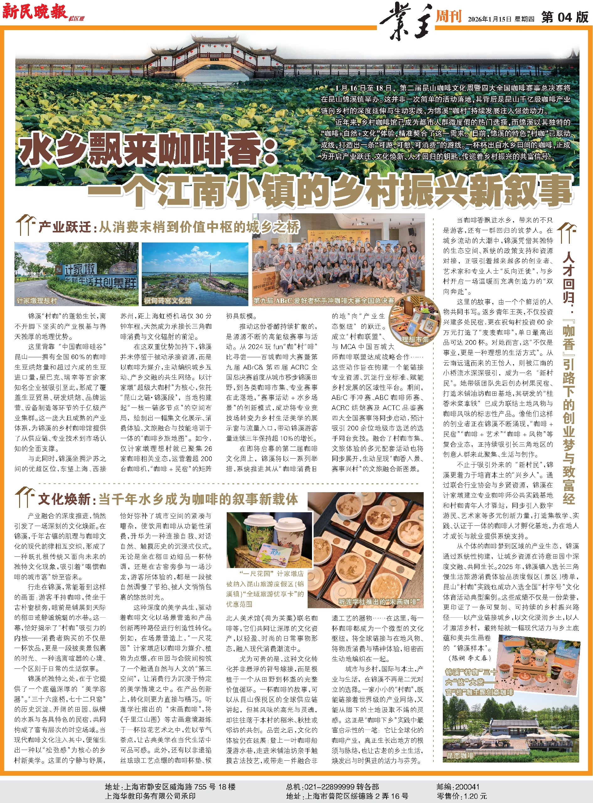 从个体的咖啡梦到区域的产业生态,锦溪通过系统性构建,让城乡资源在诗意田园中深度交融、共同生长。2025年,锦溪镇入选长三角慢生活旅游消费体验品质度假区(景区)榜单,昆山“村咖”实践也成功入选全国“村字号”文化体育活动典型案例。这些成绩不仅是一份荣誉,更印证了一条可复制、可持续的乡村振兴路径——以产业链接城乡,以文化浸润乡土,以人才激活乡村,最终绘就一幅现代活力与乡土底蕴和美共生画卷的“锦溪样本”。(陈娴 李文春)
