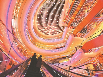 动感透光外立面、玻璃穹顶、星光天幕……昨天,陆家嘴中心L+Mall正式启幕,占据1-4层的是即将开业的法国老佛爷百货上海首店本报记者孙中钦摄