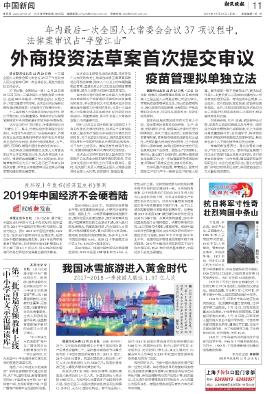 这次会议的37项议程中,法律案的审议占“半壁江山”。其中,外商投资法草案提交会议审议。中国对外开放的大门只会越开越大,外商投资立法的加速推进将更好保护在华外商投资企业的合法权益,保持外资政策稳定、公平、透明、可预期,增强外国投资者的投资信心。