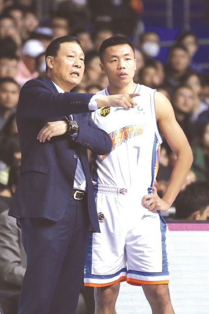 李秋平场边指导小将唐子豪 本报记者 李铭珅 摄