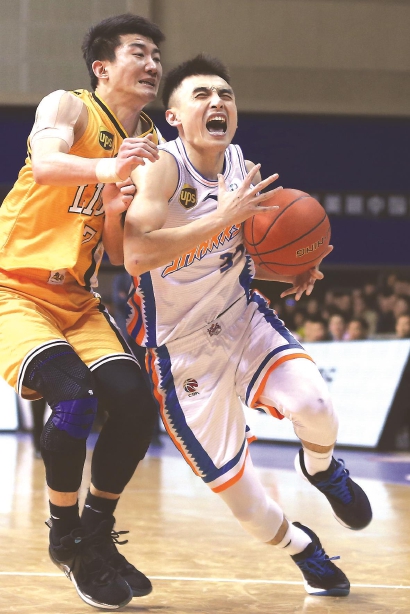 罗汉琛(右)带球突破 本报记者 李铭珅 摄