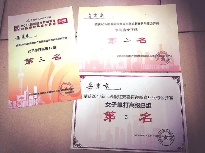 岳京京赢得的奖状 本版图片除署名外均由当事者提供