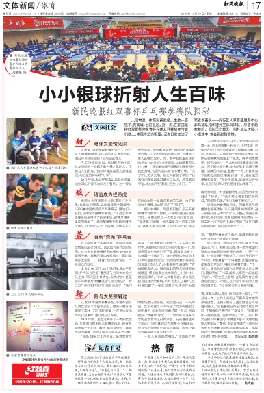 人们常说,体育比赛就像人生的一面镜子,有高峰,也有低谷。这一点,在新民晚报红双喜杯迎新春乒乓球公开赛的参与者们身上,体现得尤为明显。记者日前走访了两支参赛队——闵行区人事管理服务中心乒乓球队和华理外交乒乓球队。尽管年龄有差距,但队员们却无一例外地从这颗小小银球中,体会到甜酸苦辣。