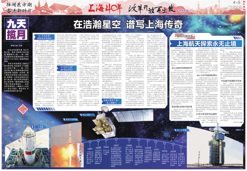 一枚枚呼啸天宇的型号产品、一发发腾空而起的火箭、一颗颗遨游太空的卫星、一艘艘满载国人梦想的神舟飞船,凝聚着上海航天人的智慧和汗水。上海航天用弹、箭、星、船的组合,奏出了一部改革开放的华丽乐章。